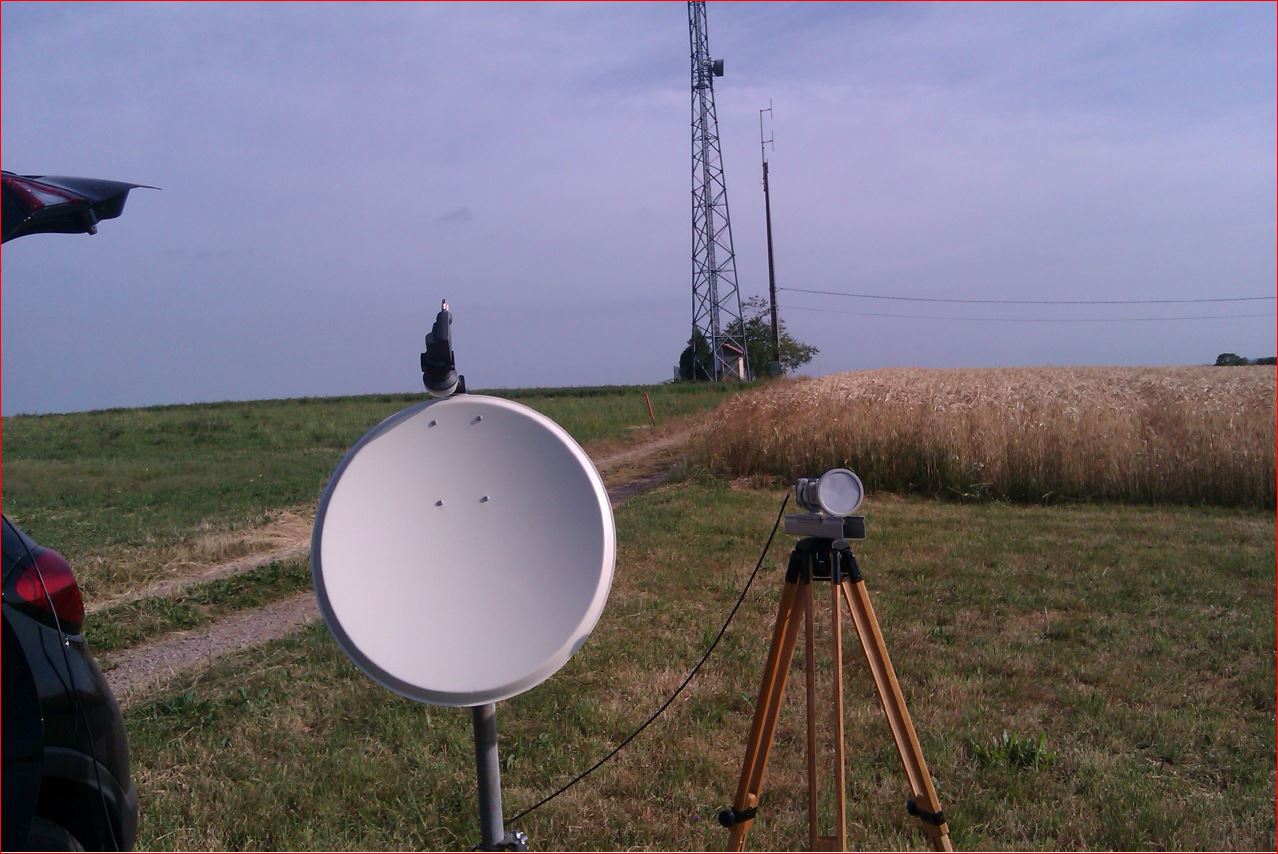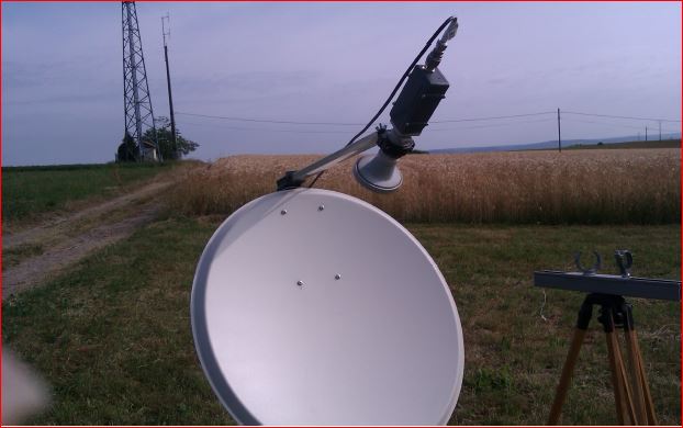 Encouragé par cette réussite, je monte sur un trépied un LNB piloté PLL, et le pointe sur JN35FU, et là les signaux deviennent très « forts et clairs ! » parfaitement lisibles, surtout en BLU.