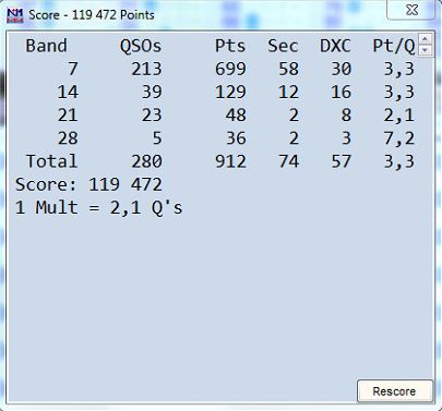 Mais voici quand même 280 QSO sur 6H d’activité….