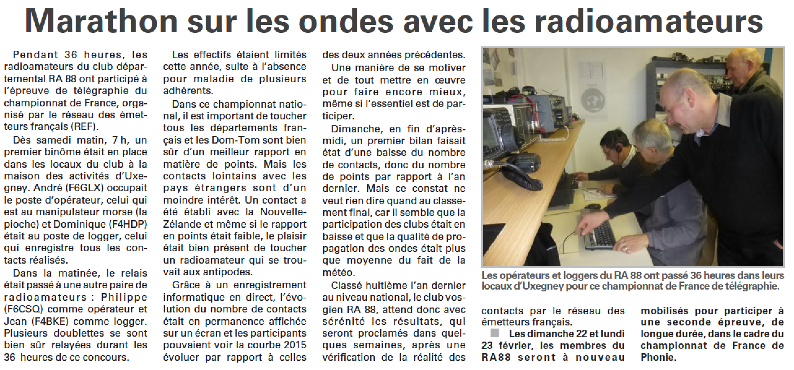 Vosges Matin: Marathon sur les ondes avec les radioamateurs 14 février 201521 février 2015 Administrateur Partager : Partager sur Facebook(ouvre dans une nouvelle fenêtre) Facebook Partager sur X(ouvre dans une nouvelle fenêtre) X